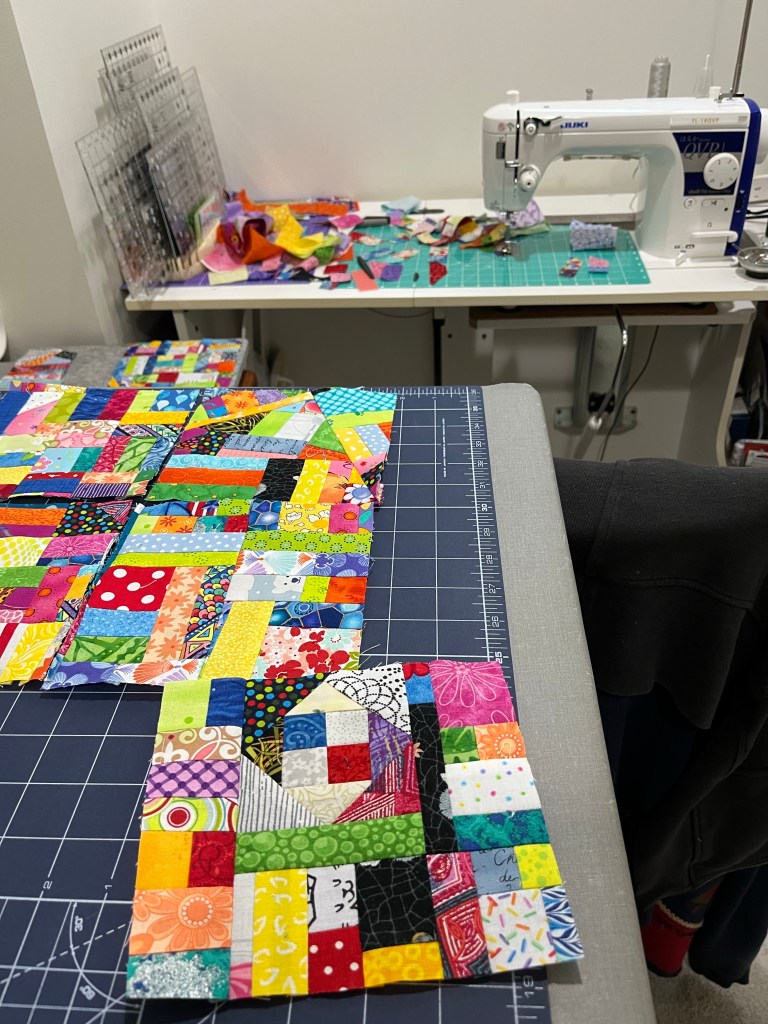 As a longtime quilter as I like to think of it…I have accumulated some fabric over the years and have kept a lot of scraps for some day. They are fun to play with and especially useful when trying out a new block or idea.