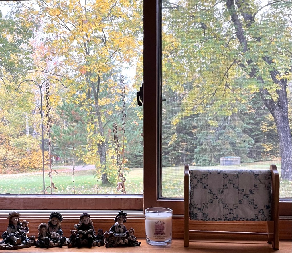 This was the view from my sewing room window last week…the leaves are falling and the view changes daily.