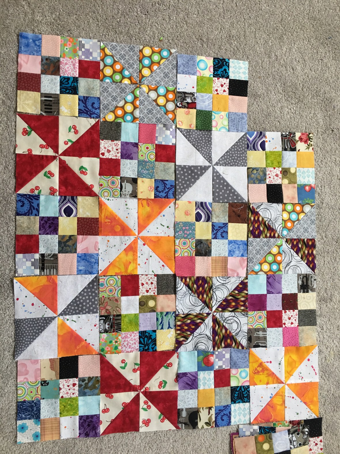 I spent a few hours working on my scrappy 16 patches