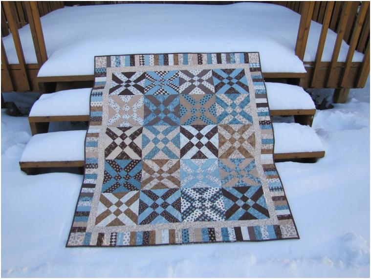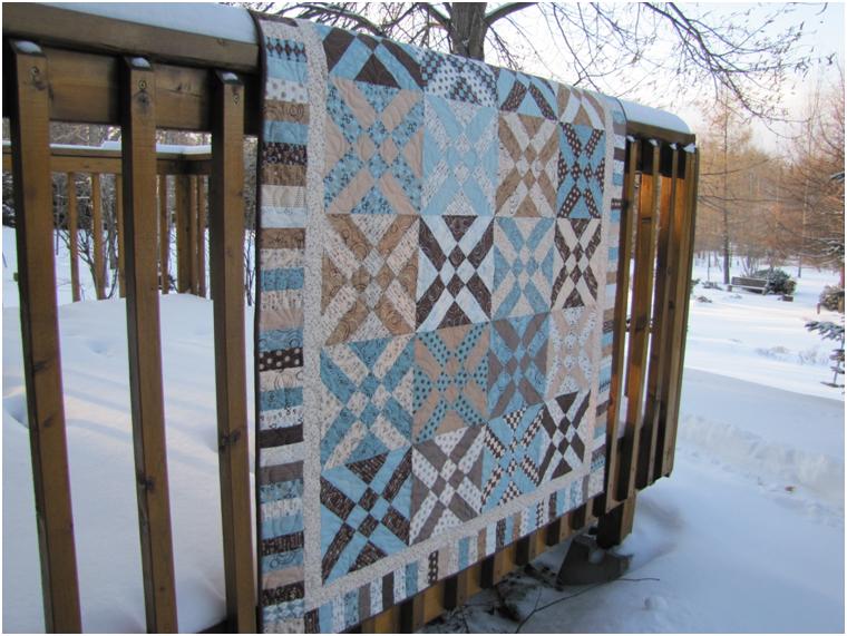 Emily is delivering Christmas gifts. One is Jerry’s quilt that I was finally able to finish up. I thought it would be fun to get a few outside shots of it to share some snow with them.