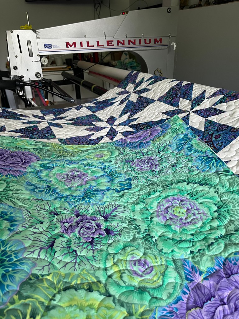 This quilt is trimmed and ready for binding a complimentary service that I always offer my customers.