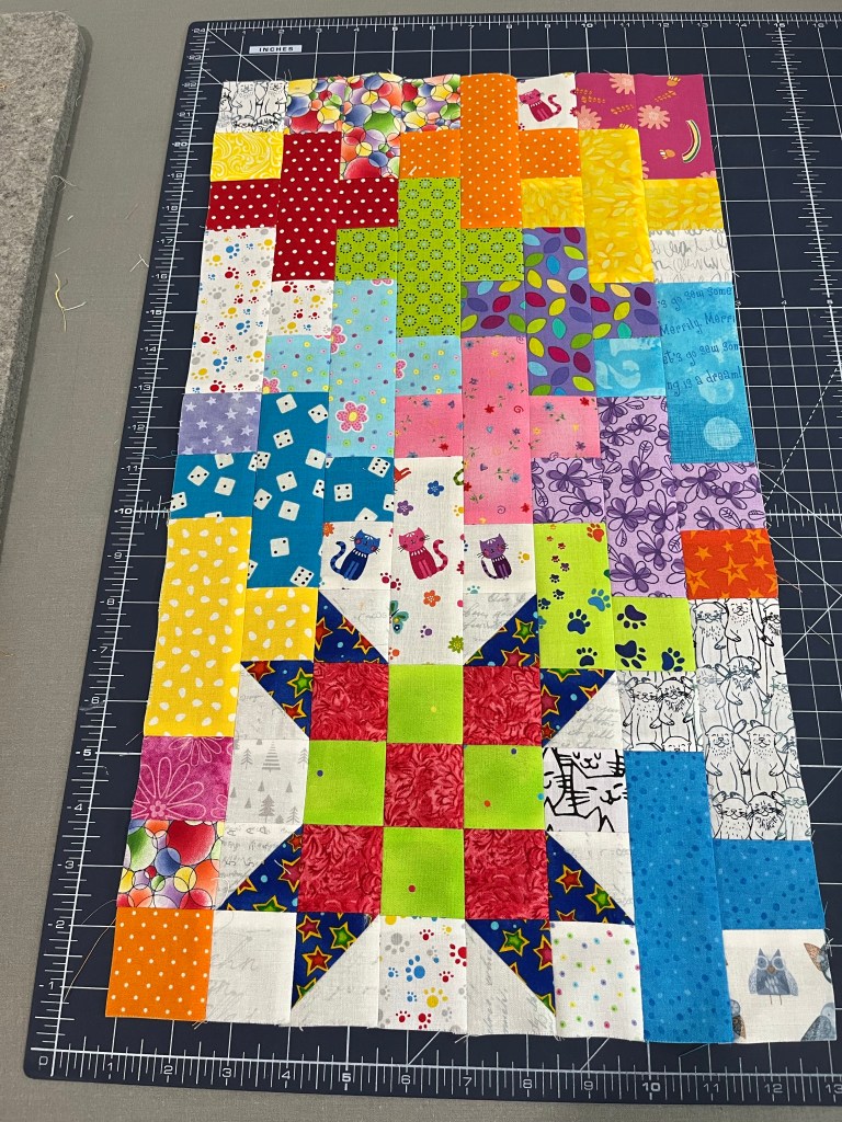 Well my scrappy quilt has been calling so I began puttering with it again.
