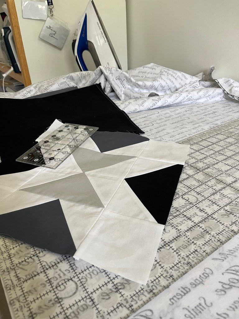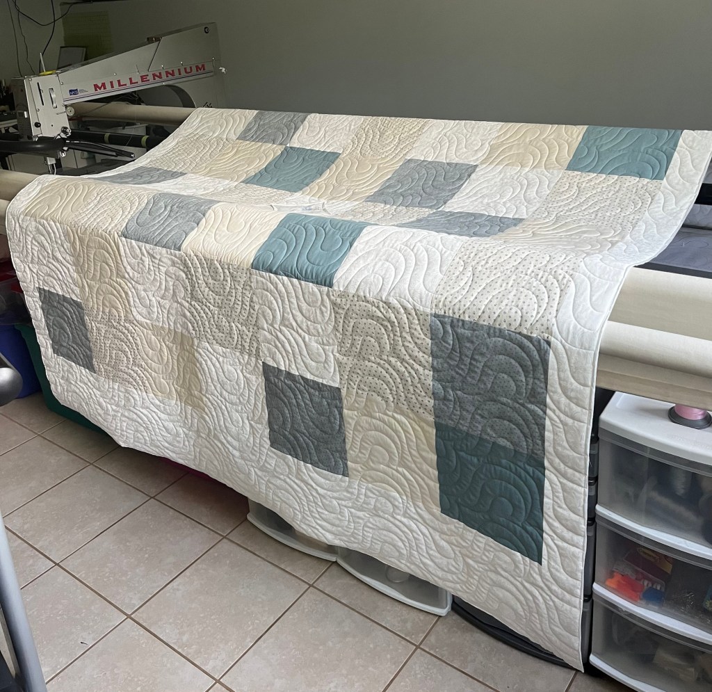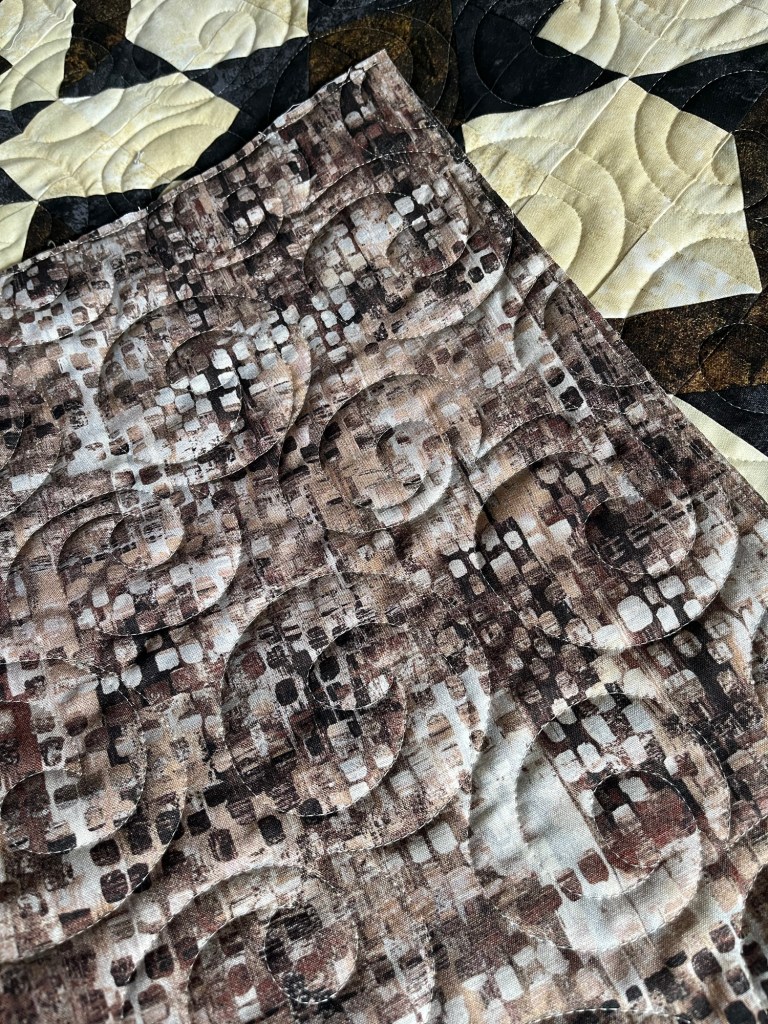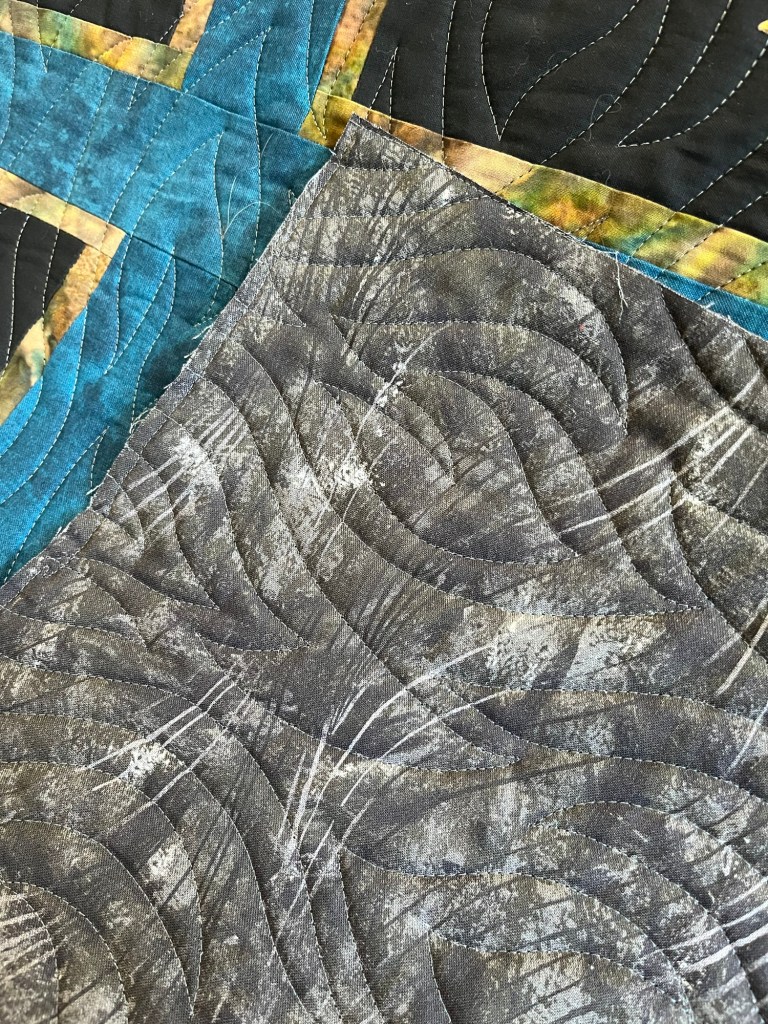 Also adding a curvy or swirly quilting design over angular piecing is pleasing to the eye.