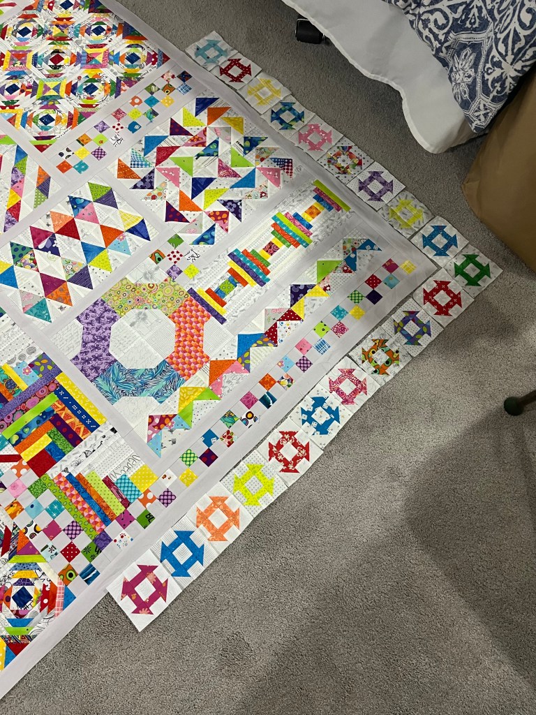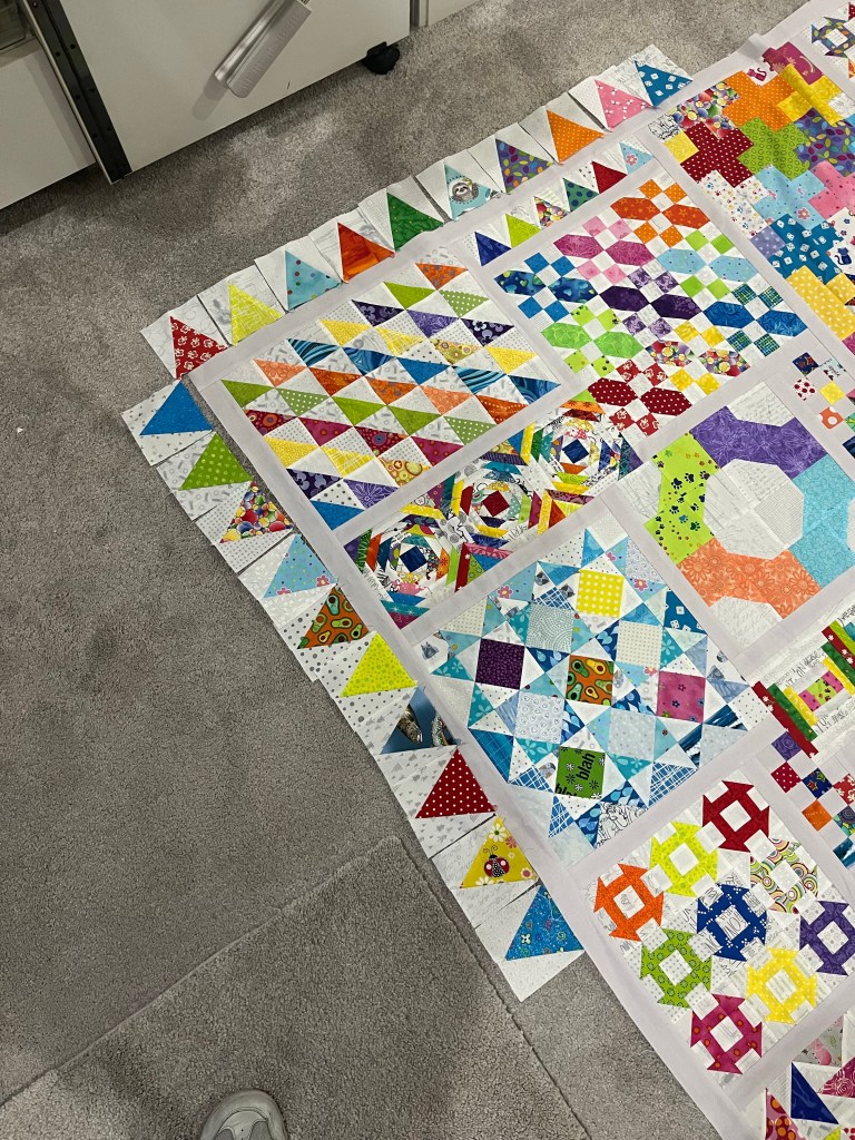 While many quilters are working along with Karen at Just Get it Done Quilting’s cleaning and sorting challenges I have been working on another half square triangle quilt for Marilyn.
