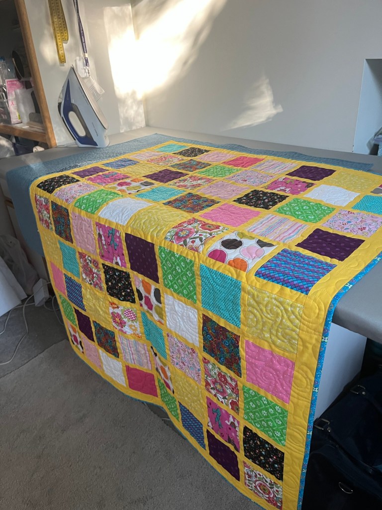 I love how happy and sunny this little quilt is and how happy I felt working on it esp knowing that it would soon be gifted to a little one.