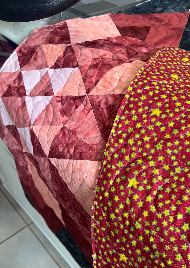 Her quilts were trimmed and ready for binding when I delivered them to her…(both complementary services)