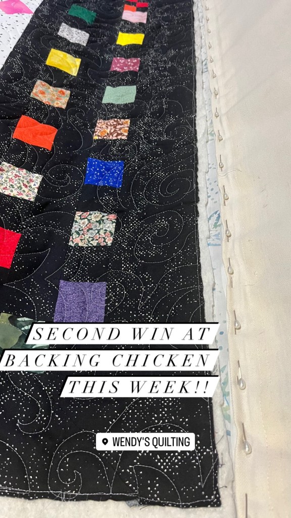 Have you heard of bobbin chicken? It’s when you realize you have finished a seam or project and had barely any bobbin thread left! Well I won at backing chicken on this one!