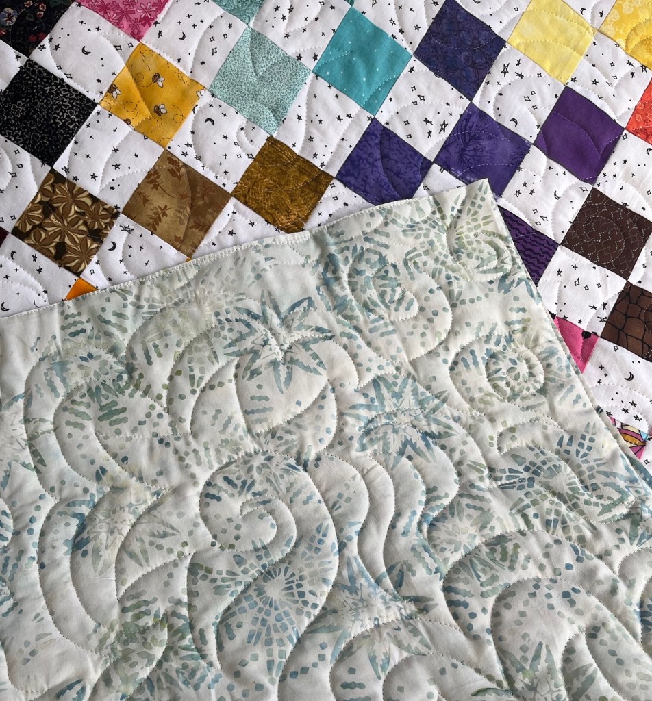 I know how much time goes into making a quilt, so it’s important to me to take the time when quilting for not only myself but for others to do it right. Seaming backs is a complimentary service, including matching the pattern.