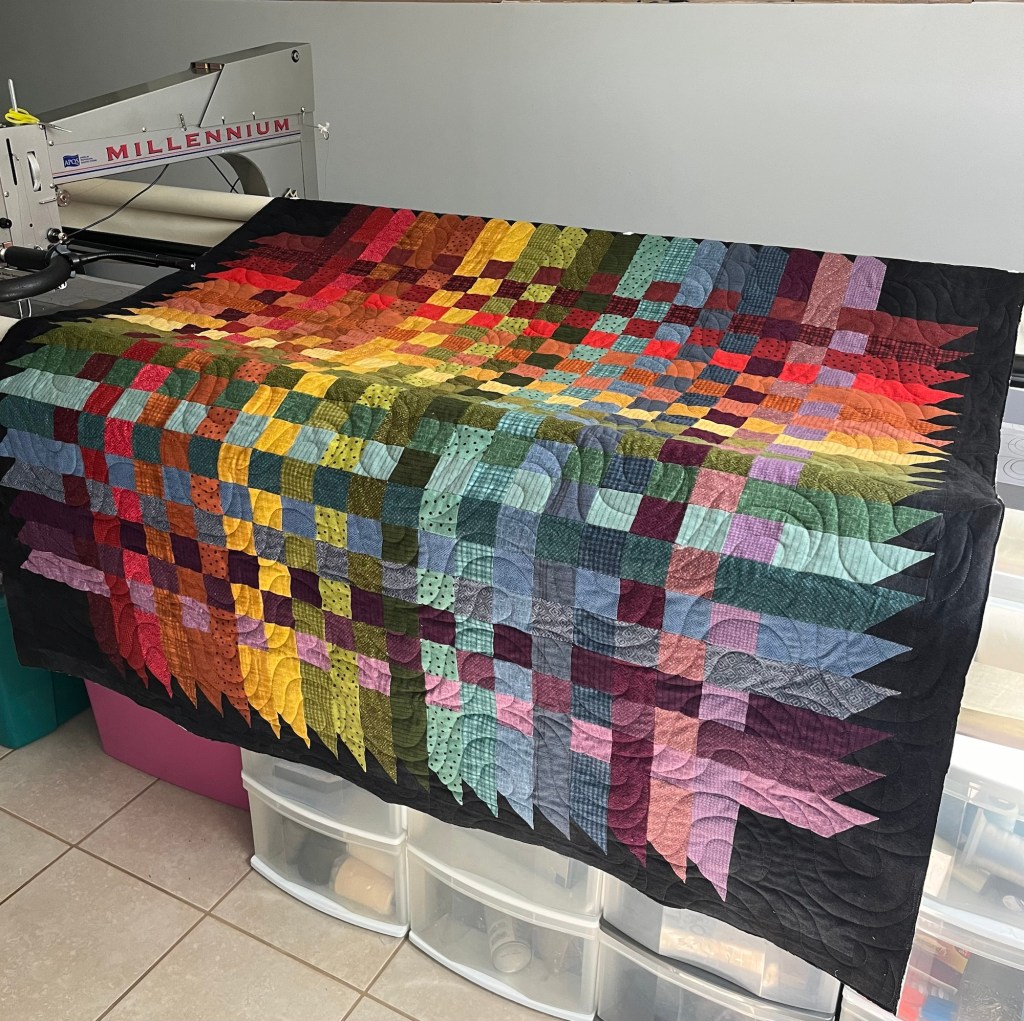 There are two quilts in this picture. Darlene chose the pantograph Two of Hearts…(an often requested design) as these quilts were made as a gift for family.
