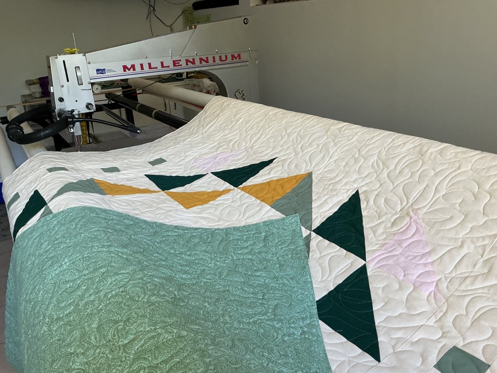 My Longarm and I have been busy finishing quilts for my customers of course. I am so thankful for my APQS Millennium and that the company is so true to its word about service. Using a longarm as much as I do there are times where parts wear out and need to be replaced or just readjusted. My experience has always been excellent over the years as in twenty years…just saying 😊