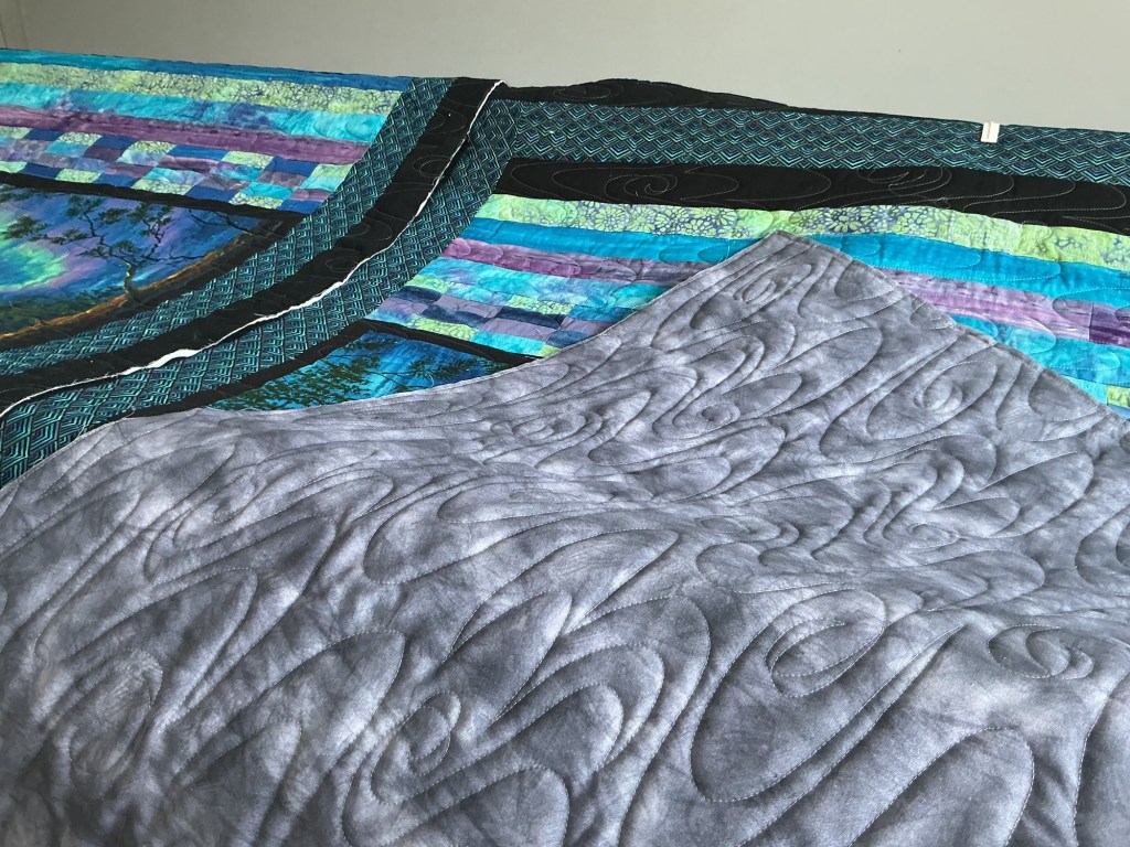 When choosing the quilting design I was considering one pantograph that really adds to the movement and look of the Northern lights however feel it didn’t do anything for the lake.